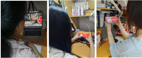 大三校外实习的学生在寝室收看课程,同样表现出高度的学习自觉性和自律性。