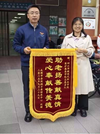 在活动现场,一面锦旗格外引人注目,上面绣着“助老扬善献真情,爱心奉献传美德”十四个大字,这是院长代表养老院赠予邓敏书记及志愿者团队的,既是对志愿者服务的认可与信赖,更是对志愿者们践行“敬老爱老助老”传统美德的最好嘉奖。