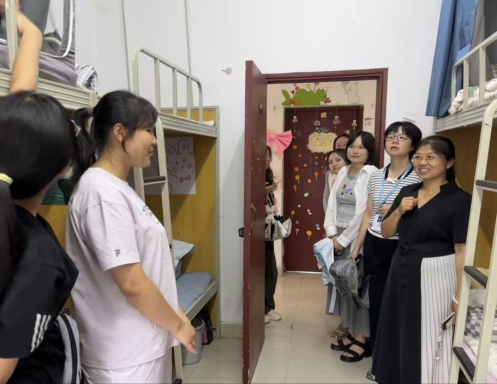 图片四 邓敏副书记、陈蒂丝副院长带领学院教师深入女生宿舍看望新生