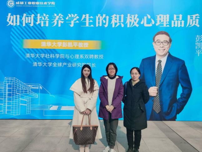 当日下午,成都工业职业技术学院荣幸邀请到清华大学社科学院与心理系双聘教授、清华大学全球产业研究院院长彭凯平,举办了一场主题为“如何培养学生的积极心理品质”的专题讲座。彭凯平教授以其深厚的学术背景和丰富的实践经验,通过“厚德载物篇:未来需要什么样的心理品质”和“自强不息篇:如何塑造积极的心理品质”两个篇章展开演讲,深入浅出地讲解了积极心理学的核心理念及其在教育领域的应用。他强调了积极心理品质对于学生个人成长和未来职业发展的重要性,并分享了多种实用的培养策略。此次讲座给中心老师留下了深刻印象。