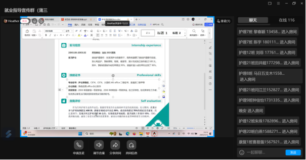 此次线上就业指导工作会内容丰富、实用性强,得到了康复与护理专业学生的高度认可。通过这次会议,学生们不仅掌握了简历撰写和网签操作的技巧,还增强了对未来就业的信心。相信在学校的支持下,康复与护理专业的毕业生们将在医疗健康领域绽放光彩,为社会健康事业贡献力量。