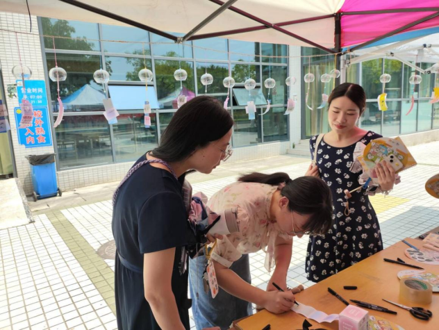 “解忧风铃”环节中,学生被邀请写下自己的烦恼或心事,并将其挂在风铃上。随着微风的吹拂,风铃发出悦耳的响声,仿佛在为每一位参与者的心声提供回应。其余同学根据风铃上的烦恼提供了宝贵的建议及温暖的支持。这一环节不仅为学生提供了一个表达内心情感的空间,也通过视觉和听觉的双重体验,帮助他们缓解心理压力,获得外界支持。