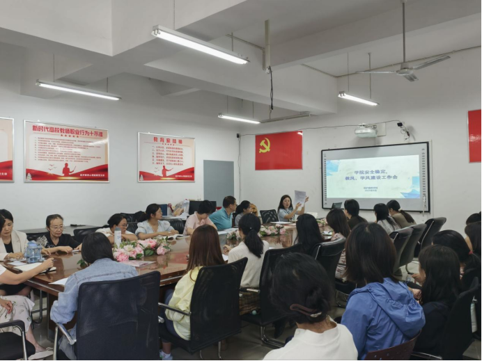 2025年9月24日,医护康养学院召开月度工作例会,围绕安全稳定、教学建设、党风廉政、理论学习及党员管理五大核心议题展开深入研讨与部署。学院领导班子、各科室负责人及全体教职工参会,共同为新学期发展凝聚共识、明确方向。