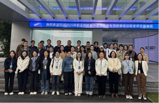 教研创新模块,设置“企业实践跟岗挖掘”“职业教育‘金专’能力图谱构建”“AI赋能教学研究”等前沿课程,并组织学员赴成都索贝数码科技集团现场学习“产教融合共同体建设”经验;