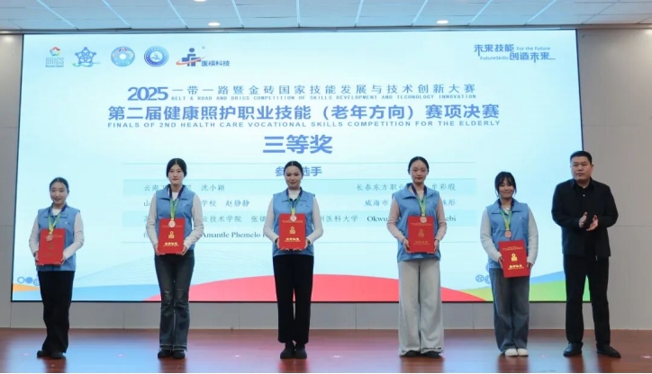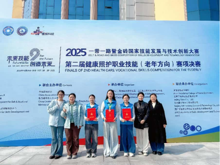 近日,2025年“一带一路”金砖国家技能发展与技术创新大赛——第二届健康照护职责技能(老年方向)赛项”圆满落幕。四川华新现代职业学院医护康养学院代表队在比赛中表现卓越,历经选拔赛与总决赛的激烈角逐,从全国众多优秀参赛队伍中脱颖而出,最终荣获多项大奖,展现了学院在健康照护领域,特别是老年照护方向扎实的教学功底与学生精湛的专业技能。