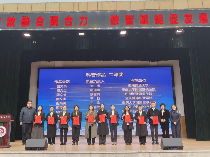 会议期间,“现代智能大健康服务产教融合共同体成都大健康产教联合体成渝双城经济圈现代护理职业教育联盟2025年度科普作品大赛”颁奖仪式顺利举行。经过专家评审团的严格遴选,我院康复专业负责人杨立军老师凭借精心创作的科普视频作品,荣获科普作品视频类二等奖;康复专业学生包智涵的科普视频作品凭借新颖的视角和扎实的内容,斩获科普作品视频类三等奖,充分展现了我院在大健康科普教育方面的丰硕成果。