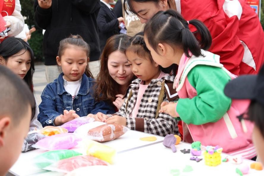 活动包括社团节目展演,气球小工坊、绘本小剧场以及“爱在起点”粘土制作、积木搭建游园区角,中国共产党人精神谱系宣讲三个部分。