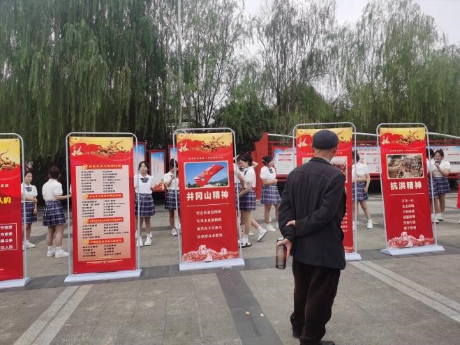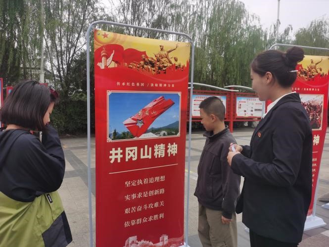 依托本次儿童友好社区公益活动,教育学院党支部精心制作了中国共产党人精神谱系的宣传展板,安排入党积极分子作为志愿者积极地宣讲井冈山精神、抗美援朝精神等精神,覆盖居民约200人。