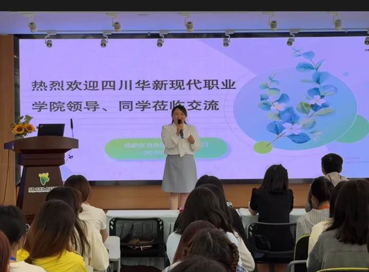 为响应落实学校访企拓岗专项行动,服务学生职业发展,4月23日,教育学院党支部副书记陈丽、副院长林森,辅导员陈跃带领22级46名同学赴龙泉驿区机关幼儿园参加“园长面对面”活动,受到甘露园长的热情接待。