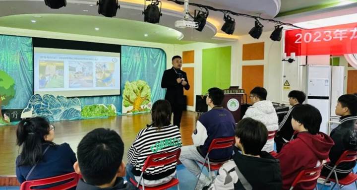 活动分为园长主题分享、参观幼儿园、园长面对面交流三个环节。张静园长在会议室给同学们带来了题为《逆风翻盘  向阳而生》的精彩分享,剖析男性在幼教行业的职业发展方向,引导同学们思考未来的职业路径。