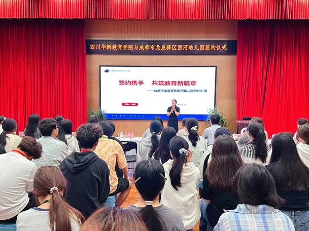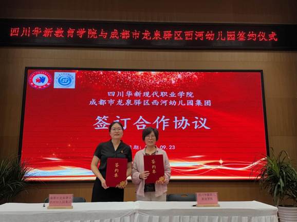 9 月 23日上午,四川华新现代职业学院教育学院与成都市龙泉驿区西河幼儿园集团成功举办校企合作签订仪式暨 2025 年学前教育新生专业认知教育活动,为双方深化产教融合、拓宽学生实习就业渠道按下 “加速键”。