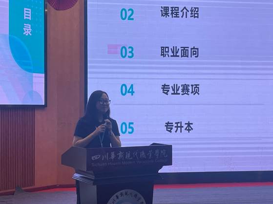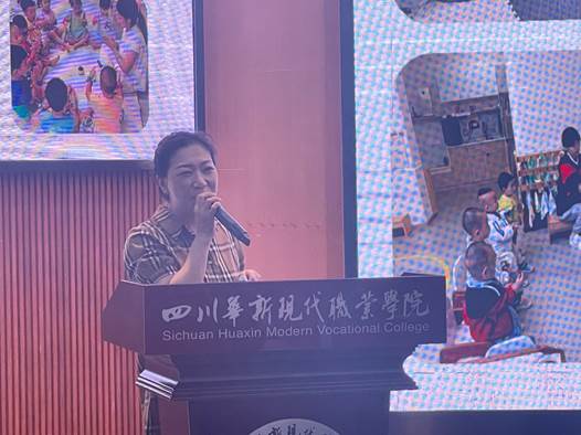 龙泉驿区爱自然托育园园长程慧通过托育服务与管理专业人才的需求、托育行业相关产业链就业机会、多元化与个性化服务等发面的介绍,帮助新生了解“市场”和“职场”。