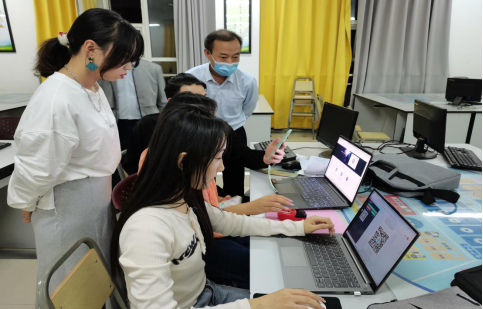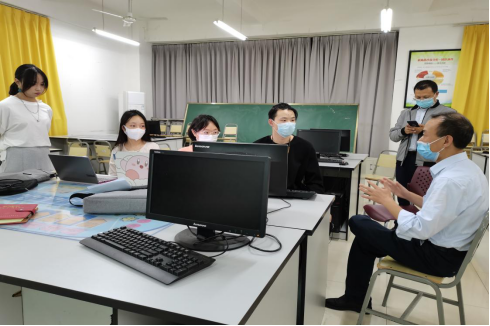 刘斌院长亲切地向每位同学表达来自学院的问候,现场观摩同学们的竞赛演示,并拉来一张凳子和同学们肩并肩坐着深入交流,同学们热情高涨,畅所欲言,他们利用这难得的机会争相和刘院长交谈:谈人生、谈就业、谈校园,更在党的二十大召开之际谈思政、谈青年人的理想与信念……