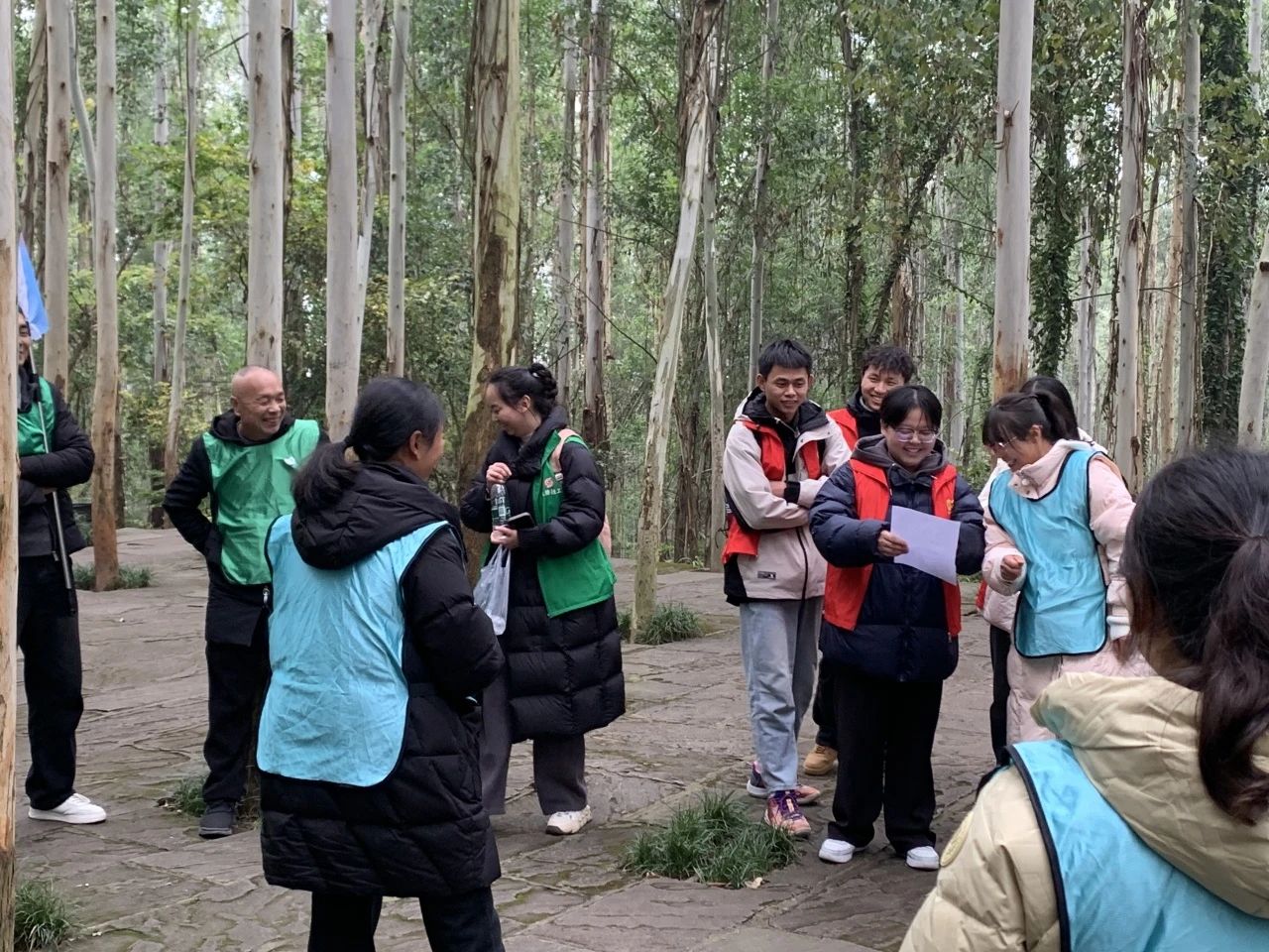 随着人们健康意识的不断提升以及户外运动热潮的兴起,健身步道成为大众亲近自然、强身健体的重要场所。龙泉山仰天窝健身步道凭借其优美的自然风光与适宜的地形条件,吸引了众多社区居民前来体验。为给社区居民提供更好的运动体验,激发社区居民的运动热情,故于2024年12月18日在龙泉山仰天窝健身步道举办“龙泉山仰天窝健身步道协助”志愿活动。本次志愿活动由杜双伶同学带领7位同学共同参加。