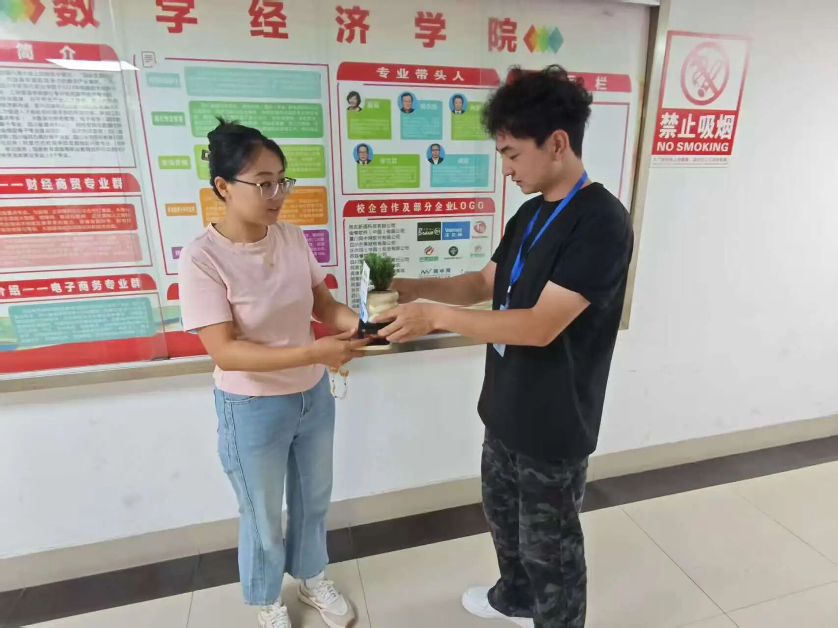 在第41个教师节来临之际,数字经济学院的学子们向学院的老师们献上了最真挚的感恩与祝福。将一盆绿意盎然的盆栽送到老师手中。那小小的绿植,象征着数字经济领域的蓬勃发展,更寓意着老师对学子们的培养如草木生长般,让知识与智慧在一届又一届数经学子心中扎根、繁茂。