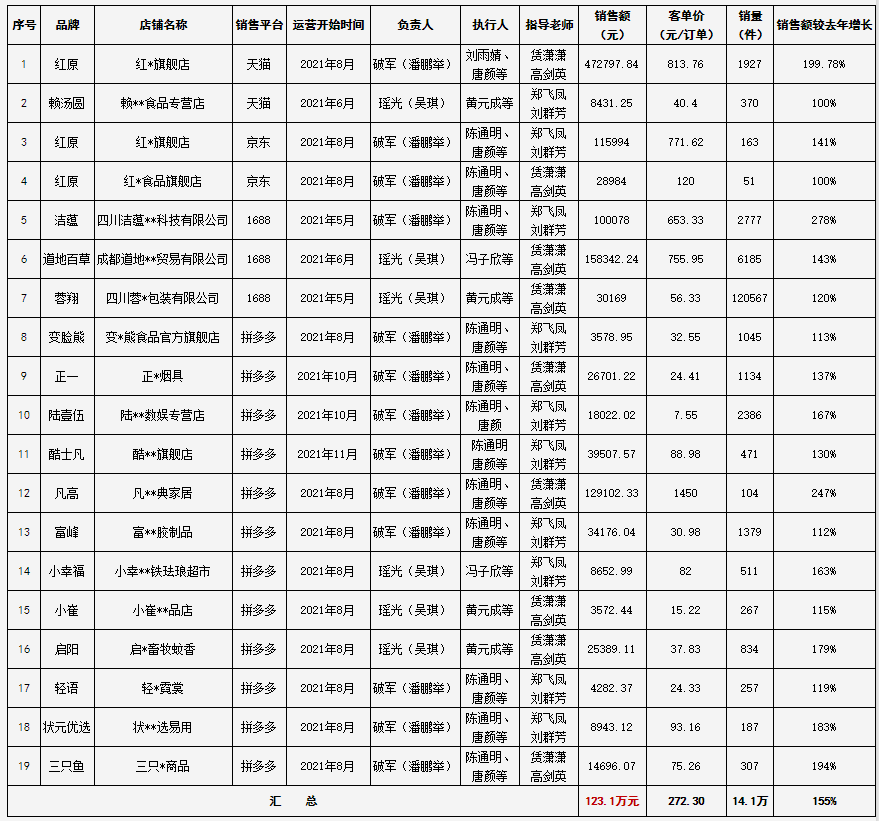 表2 潘鹏举、吴琪运营店铺名称及运营成果