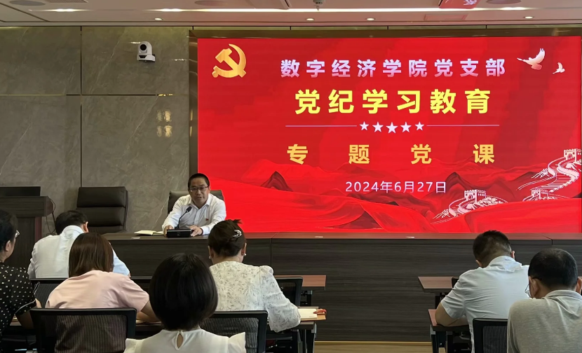 为深入学习贯彻习近平总书记关于党纪学习教育的重要讲话和重要指示精神,准确把握党纪学习教育目标要求和重点任务,切实通过党纪学习教育,增强支部全体党员及干警的廉洁自律意识,筑牢拒腐防变思想防线,按照学校党委的安排部署,数字经济学院党支部于2024年6月27日上午9:30在明德楼602会议室开展了支部书记讲专题党课活动,分管院领导卿松副院长列席。