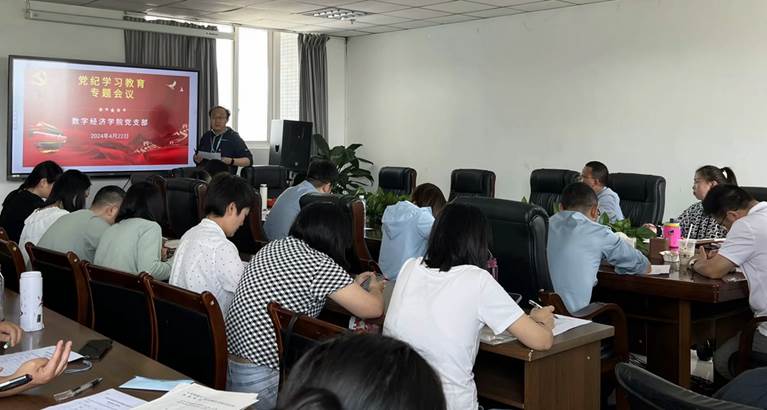 1、2024年4月22日中午,在明德楼626会议室开展“党纪教育”专题会议,并进行了集中学习。会议由支部书记张华主持,数字经济学院全体党员参加,非党员领导干部和教职工列席。