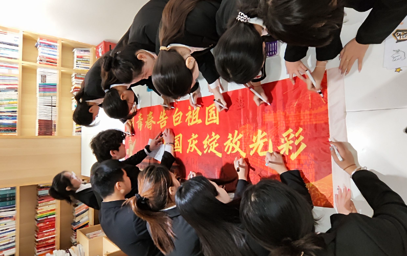 最后,全体同志在写有“用青春告白祖国,在国庆绽放光彩”的横幅上, 郑重地在横幅上写下自己的名字。这一个个名字不仅代表着我们对祖国的忠诚与热爱,更是我们对建设社会主义现代化强国的庄重承诺,表达了我们为祖国的繁荣富强而努力奋斗的决心。