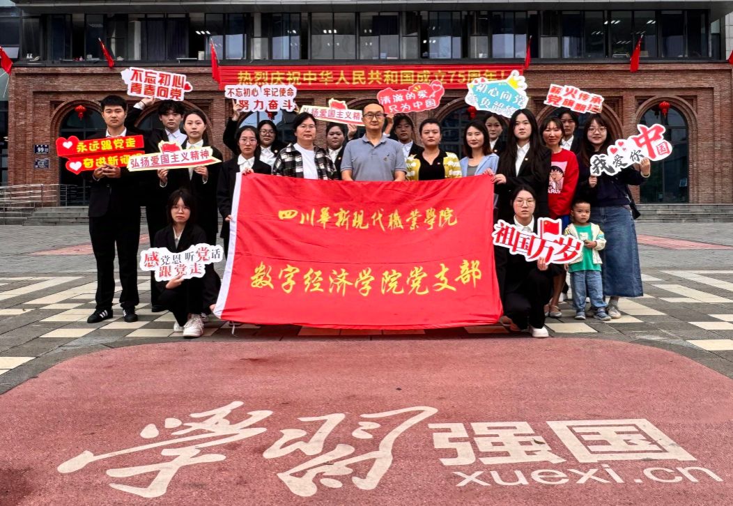 为热烈庆祝中华人民共和国成立75周年,深入学习贯彻党的二十届三中全会精神,切实落实立德树人根本任务,弘扬爱国主义教育,增强师生的民族自豪感,激发师生爱国情怀,数字经济学院党支部于9月20日前往成都市成华区的“学习强国特色街区”开展“用青春告白祖国,在国庆绽放光彩”喜迎新中国成立75周年教育活动。