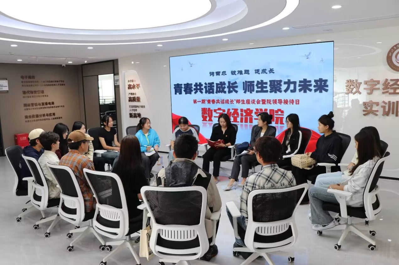 在全面推进中国式现代化建设、奋力实现中华民族强国梦的时代征程中,数字经济学院党支部积极响应号召,组建了“强国行”专项行动团队,旨在引领青年学子将个人成长融入国家发展大局,以实际行动践行青春使命。10月14日,我们以“青春共话成长,师生聚力未来”为主题,举办了一场温馨而深刻的师生座谈会,这不仅是“强国行”专项行动的重要一环,更是我们倾听青年心声、凝聚奋进力量的生动实践。
