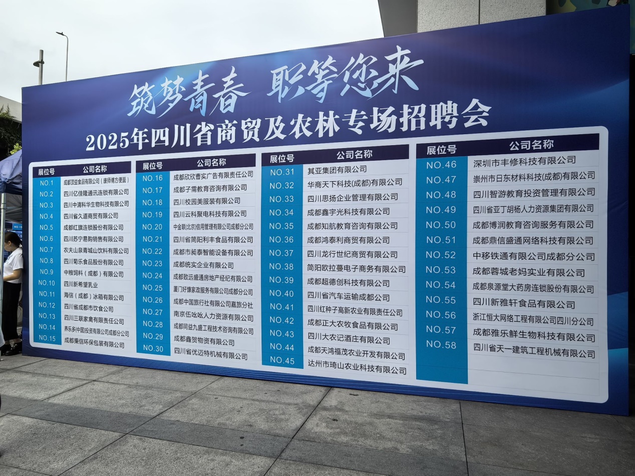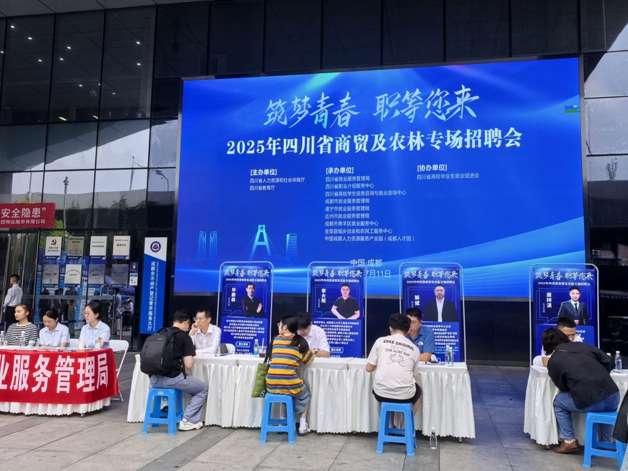 招聘会由四川省人力资源和社会保障厅、四川省教育厅联合主办,四川省就业局、省人才交流中心等单位承办,吸引成都鸿泰利商贸、四川红籽高新农业等58家川内外知名企业设展纳才,岗位覆盖商贸运营、农业科技、电商服务、数字化管理等多领域。现场人头攒动,企业代表与求职者深入交流,氛围热烈。