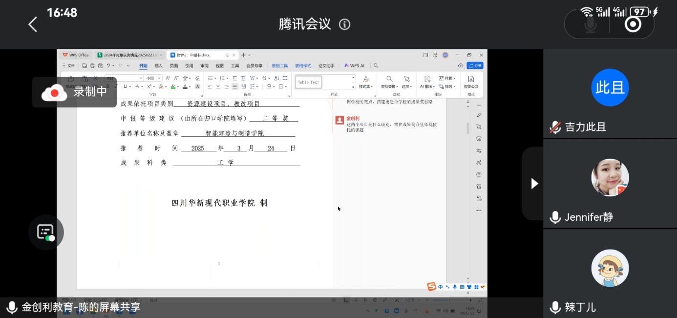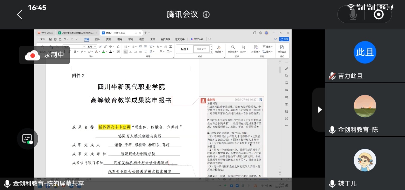 会上,陈老师系统解读了教学成果奖的申报赛道、评审标准及关键时间节点,结合国家级教学成果奖的评选要求,对学院提交的"装备制造专业群教学成果"材料进行了专业点评。专家从成果选题的创新性、实践效果的显著性、推广应用价值等维度提出了针对性建议,特别就成果总结提炼、支撑材料完善等环节给予了具体指导。