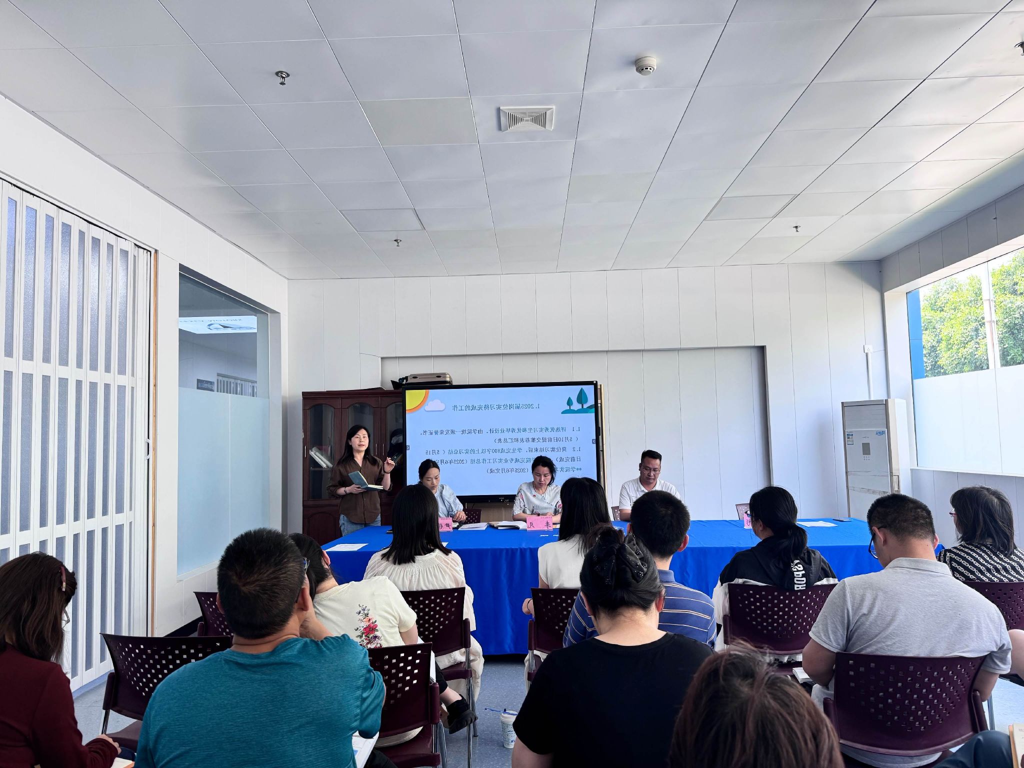 会议第三项,由副院长黄彬彬对岗位实习工作进行安排部署。她首先对2025届岗位实习待完成工作进行了通报,提醒各位岗位实习指导教师要严格按照学院要求完成岗位实习工作。随后,对2026级岗位实习工作进行了安排,制订进度安排表供学生和指导教师使用,希望大家共同努力完成相关工作要求。