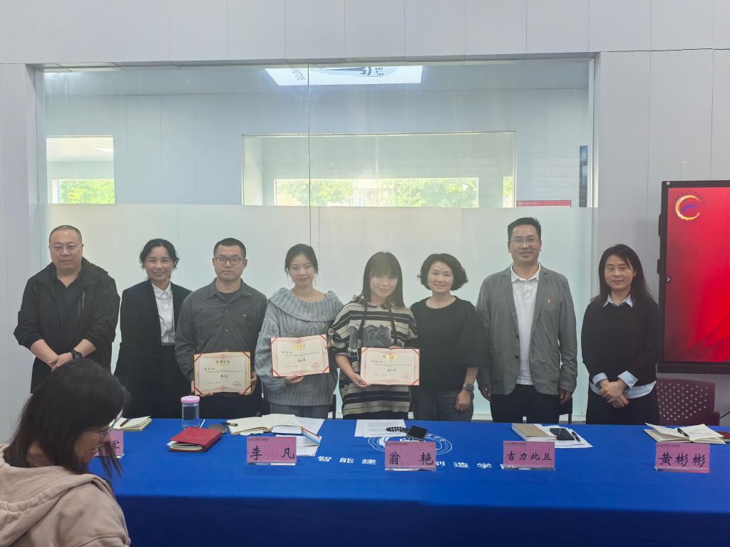 会议最后一项,进行智能建造与制造学院2024年辅导员素质能力大赛颁奖仪式,由华新学院翁艳副院长为获奖的三位辅导员颁奖并合影留念。