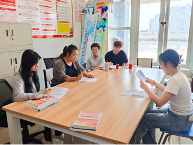 图1 倾心社区阅览室与学生讨论创新创业项目