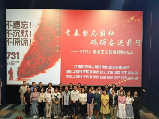 为纪念中国人民抗日战争暨世界反法西斯战争胜利80周年,进一步加强爱国主义教育,传承红色基因,9月18日,学工学生团委保卫党支部、后勤基建资产财务党支部、教育学院、数字经济学院、院团委70名学生前往西河博林广场店(保利万和国际影楼)开展“传承红色基因,弘扬伟大抗战精神”主题党日活动,集体观看爱国主义影片《731》。