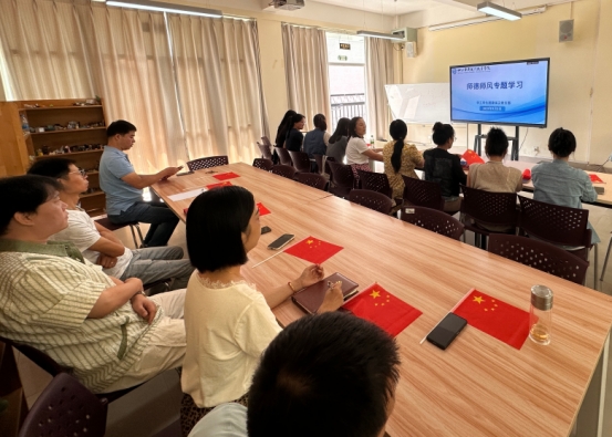 为深入贯彻落实习近平总书记关于教育的重要论述和关于师德师风建设的指示精神,持续强化支部教师队伍思想政治和师德师风建设,引导支部党员以案为鉴、警钟长鸣,自觉践行新时代高校教师职业行为准则,2025年9月3日,学工学生团委保卫党支部在诚明小楼开展师德师风专题学习。